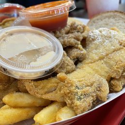 Long overdue visit here, happened to come here on a whim. I'm glad we finally visited this place, because they have some of the best fried seafood we've had so far. The owner Ray welcomed us in, and he was super helpful noticing it was our first time here. He gave us a few recommendations of what was popular. We tried the red snapper, catfish nuggets and basa. I didn't care for the red snapper personally but my aunt and brother loved them. I think the catfish and basa were the best personally. Sauces are great too, their super flavorful tartar sauces paired well with the seafood. Fries were great too. Blueberry lemonade hit the spot in the heat. Looking to try the actual catfish fillets since the nuggets were spectacular. The oysters and chicken seemed interesting so I may try those next time. Overall they deserve a 4.5/5 stars for me. It might be five if everything else they have is good too.